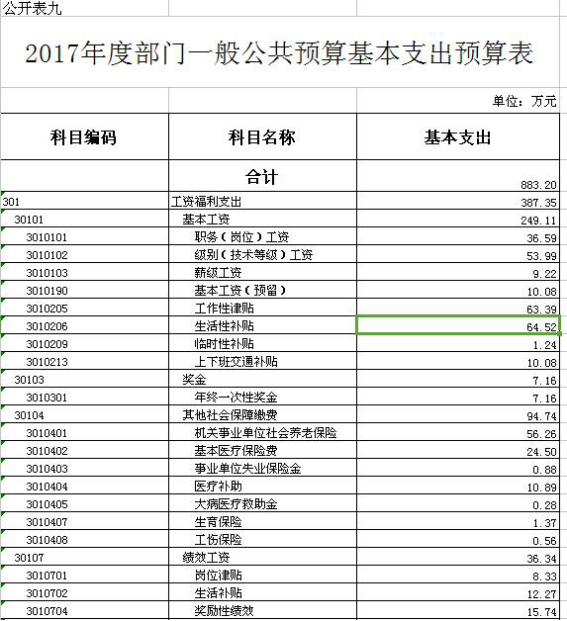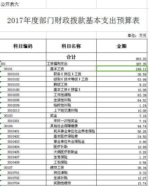 本部門2017年度一般公共預算財政撥款基本支出預算   883.2  萬元,其中: