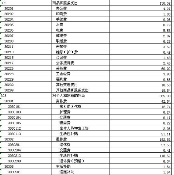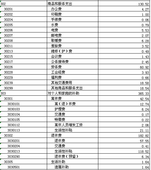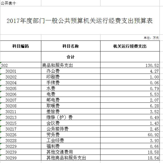(二)公用經費 130.52  萬元。主要包括:辦公費4.27萬元、印刷費1萬元、手續(xù)費0.06萬元、水費0.79萬元、電費5.53萬元、郵電費2.07萬元、取暖費6.28萬元、差旅費3.52萬元、維修(護)費0.49萬元、會議費1.43萬元、公務接待費2.45萬元、勞務費60.92萬元、工會經費3.93萬元、福利費0.66萬元、其他交通費用18.58萬元、其他商品和服務支出18.54萬元