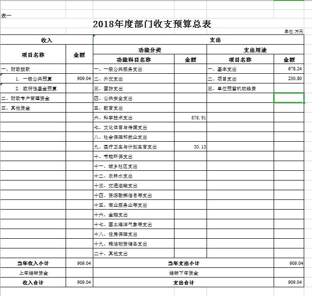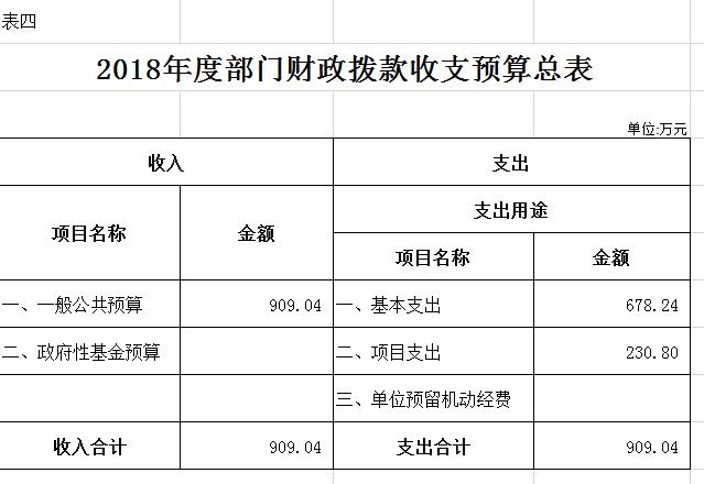 1.財(cái)政撥款收入預(yù)算總計(jì) 909.04 萬元。