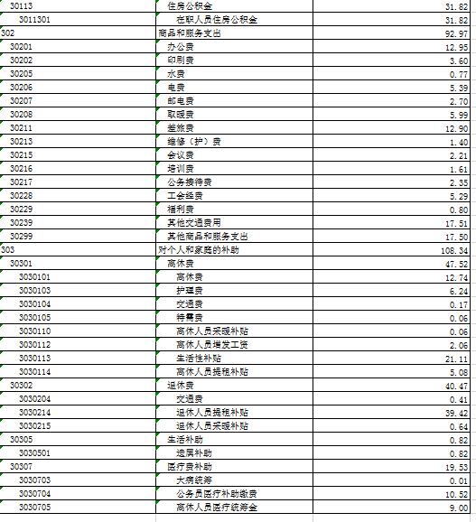 (一)人員經(jīng)費(fèi) 585.27 萬元。主要包括:基本工資、津貼補(bǔ)貼、獎(jiǎng)金、社會(huì)保障繳費(fèi)、績(jī)效工資、機(jī)關(guān)事業(yè)單位基本養(yǎng)老保險(xiǎn)繳費(fèi)、其他社會(huì)保障繳費(fèi)、住房公積金、離休費(fèi)、退休費(fèi)、生活補(bǔ)助、醫(yī)療費(fèi)補(bǔ)助。