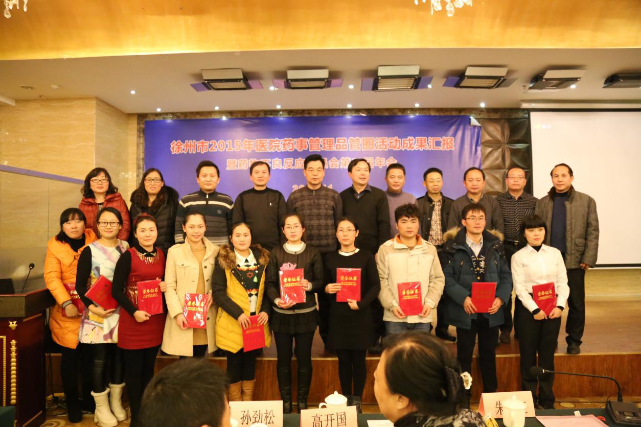 會上,徐州市藥物不良反應(yīng)專業(yè)委員會主任委員楊波作2015年藥物不良反應(yīng)上報工作報告,徐州市醫(yī)學會臨床藥學專業(yè)委員會主任委員、徐州市醫(yī)院藥事管理品管圈活動執(zhí)行長、徐州市第一人民醫(yī)院藥劑科主任佟俊太主任對2015年醫(yī)院藥事管理品管圈活動情況進行總結(jié),對2016年品管圈活動提出要求。會議表彰了2015年藥物不良反應(yīng)上報先進單位,睢寧縣人民醫(yī)院、豐縣人民醫(yī)院、徐州市醫(yī)學院附屬醫(yī)院、新沂鐵路醫(yī)院、新沂市人民醫(yī)院、徐州市中醫(yī)院獲獎。參加本次匯報評比的18品管圈經(jīng)過激烈角逐,徐州市第一人民醫(yī)院至上圈獲得第一名,徐州市中心醫(yī)院拉手圈及沛縣人民醫(yī)院微笑圈獲得第二名,徐州醫(yī)學院附屬醫(yī)院蝴蝶圈、和樂圈、CPU圈獲得第三名??偡峙帕星八奈坏闹辽先?、拉手圈、微笑圈、蝴蝶圈將代表徐州市參加12月27日江蘇省藥學會品管圈大賽。
