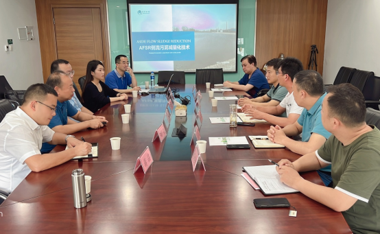 研討會上,曉清環(huán)??萍加邢薰卷n小清董事長介紹了“AFSR側流污泥減量化技術及應用”,以及本公司在河北樂亭污水處理廠運行與管理情況。大家圍繞“污泥源頭高效減量化”進行了技術研討和交流,對曉清環(huán)??萍脊煞萦邢薰镜奈勰嘣搭^減量化技術給予了充分肯定,新水公司表示將積極推廣污泥源頭減量化新技術。