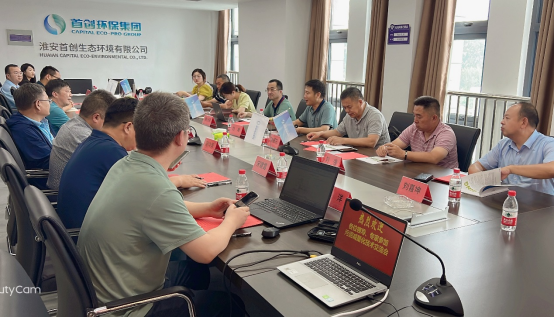 為進(jìn)一步推進(jìn)徐州-淮安兩地污泥減量化新技術(shù)的交流與合作,7月1日,徐州市水利學(xué)會在淮安首創(chuàng)生態(tài)環(huán)境有限公司組織召開了污泥減量化新技術(shù)研討會。徐州市水利學(xué)會、淮安市住建局市政排水中心、淮安市清源排水有限公司、淮安首創(chuàng)生態(tài)環(huán)境有限公司、中核(淮安)環(huán)保工程有限公司、宿遷首創(chuàng)污水處理有限公司、徐州首創(chuàng)水務(wù)有限公司、曉清環(huán)保科技股份有限公司領(lǐng)導(dǎo)和技術(shù)人員,以及淮陰工學(xué)院、江蘇建筑職業(yè)技術(shù)學(xué)院、徐州工程學(xué)院的教授,共20余人參加了研討會?;窗彩星逶磁潘邢薰局е衼喛偨?jīng)理致辭,徐州市水利學(xué)會劉奉秘書長主持會議。