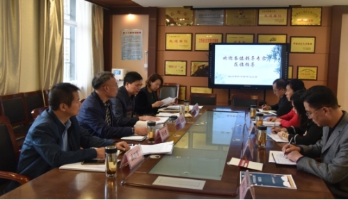 考核組成員聽取學(xué)校負(fù)責(zé)人匯報(bào)
