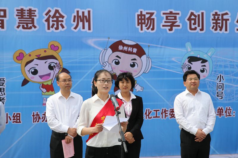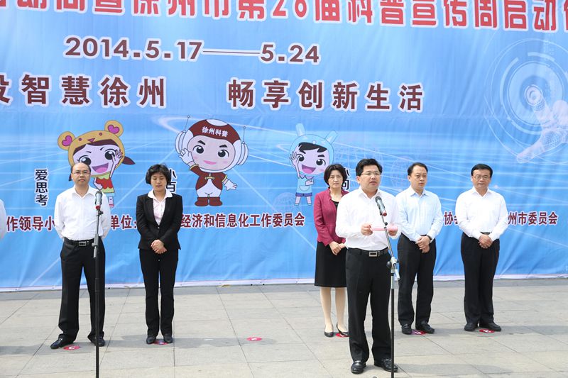 啟動儀式上,邳州市市委副書記、市長陳靜首先致辭,他說啟動儀式在邳州隆重舉行,是對邳州市科技和科普工作的充分肯定和有力推動。邳州在經濟社會跨越發(fā)展中,堅持把科技創(chuàng)新作為轉變經濟發(fā)展方式的重要支撐,深入實施創(chuàng)新驅動戰(zhàn)略,加大科技投入,大力發(fā)展高科技產業(yè),加強研發(fā)平臺建設,著力實施科普惠民工程,高標準建成一批省級科普示范鎮(zhèn)、村,多次獲評省科普示范市、全國科技進步先進市。