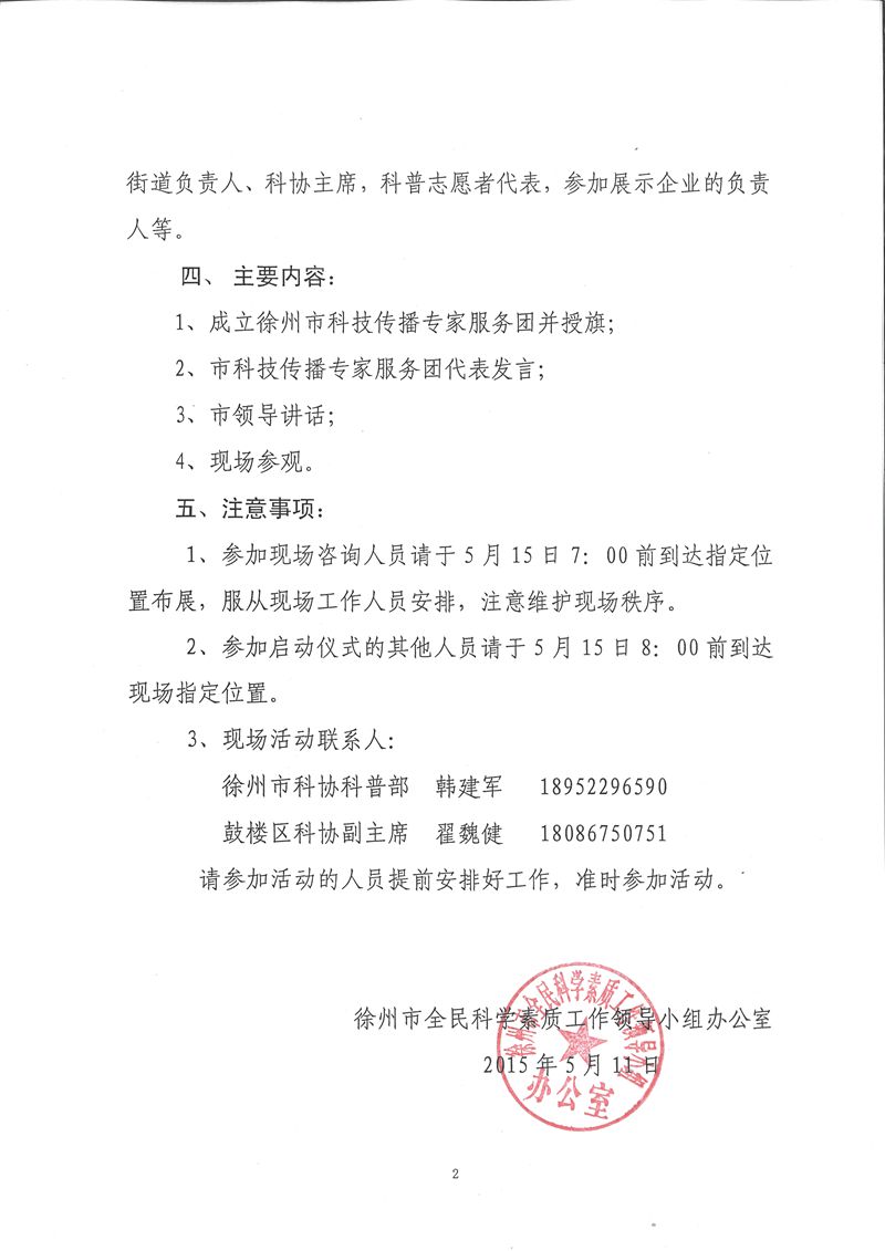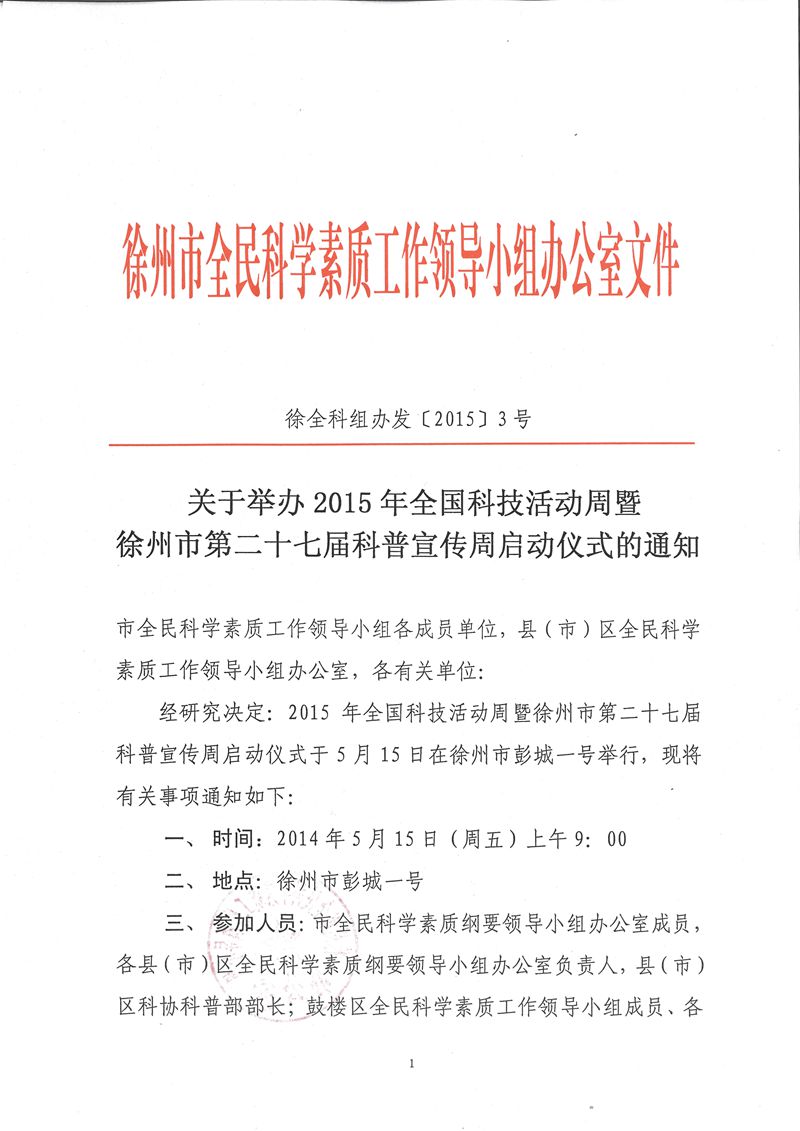 關(guān)于舉辦2015年全國科技活動(dòng)周暨徐州市第二十七屆科普宣傳周活動(dòng)的通知