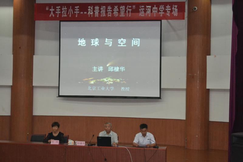 “大手拉小手——科普報告希望行”活動是由中國科協(xié)青少年科技中心委托中國青少年科技輔導(dǎo)員協(xié)會實施的一項科普活動?;顒拥闹黝}是倡導(dǎo)科學(xué)理念、提升科學(xué)思維。 此次邀請來徐州作主題報告的是王漢杰(空軍裝備研究院氣象研究所教授)和北京工業(yè)大學(xué)邱棣華(北京工業(yè)大學(xué)教授)。王漢杰教授在“青少年創(chuàng)新與成長之路”的報告中勉勵廣大學(xué)生在當前大眾創(chuàng)業(yè)、萬眾創(chuàng)新的時代背景下,在學(xué)習(xí)和生活中要敢于標新立異、大膽設(shè)想,敢于提出問題并要有敏銳的發(fā)現(xiàn)問題的能力,要創(chuàng)有新精神,樹立良好的創(chuàng)造意識和科學(xué)思維。邱棣華教授在“地球與空間”的報告中,圍繞有限的地球空間、地球的能量釋放、地球空間的利用和未來的空間探索等五方面進行了闡述,講解了地球的形成、結(jié)構(gòu)和當前地質(zhì)災(zāi)害等,指出愛護環(huán)境,人人有責(zé)。地球是人類的家園,大家要努力愛護它,珍惜美麗的環(huán)境。 此次活動不僅拓寬了廣大學(xué)生的科技視野,領(lǐng)略到先進科技帶來的巨大變化,增強了同學(xué)們的科技學(xué)習(xí)熱情,同時也普及了科學(xué)文化理論知識,達到了提升未成年人的科學(xué)素質(zhì)。