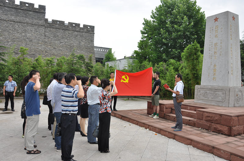 我們在英烈紀念碑前,莊嚴舉起右手,重溫入黨誓詞,繼承“運河支隊”精神,堅定理想信念,立足本職崗位,做“四講四有”的合格黨員,以實際行動紀念建黨95周年,以一流業(yè)績推動“兩學一做”學習教育的開展。