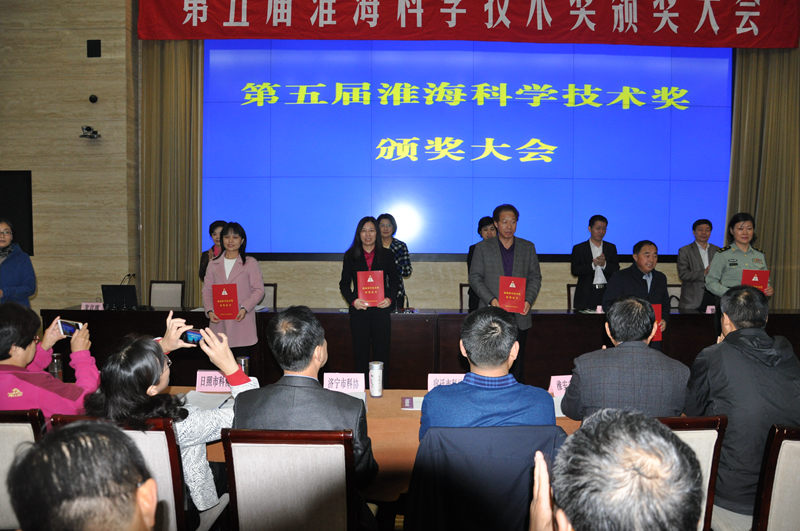 10月25日,第五屆淮??茖W技術獎頒獎大會在徐州市會議中心隆重舉行。徐州市政府副市長李燕、江蘇省科協(xié)副主席徐春生等領導為獲獎單位和個人頒獎,安廣池等4位獲獎代表作會議交流發(fā)言。