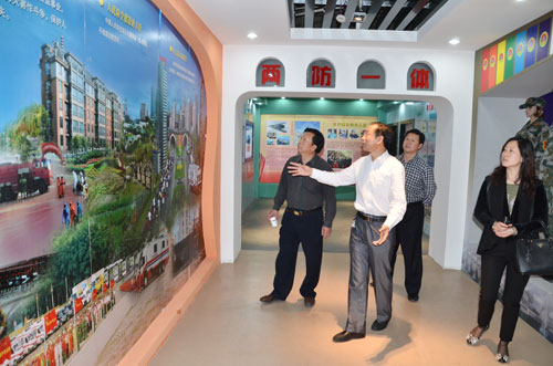 豐縣人防辦杜曉光主任向周飛主席等介紹人防展館建設情況