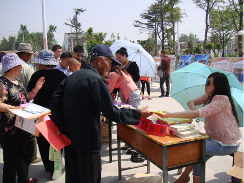 科普志愿者在向廣大市民發(fā)放科普資料