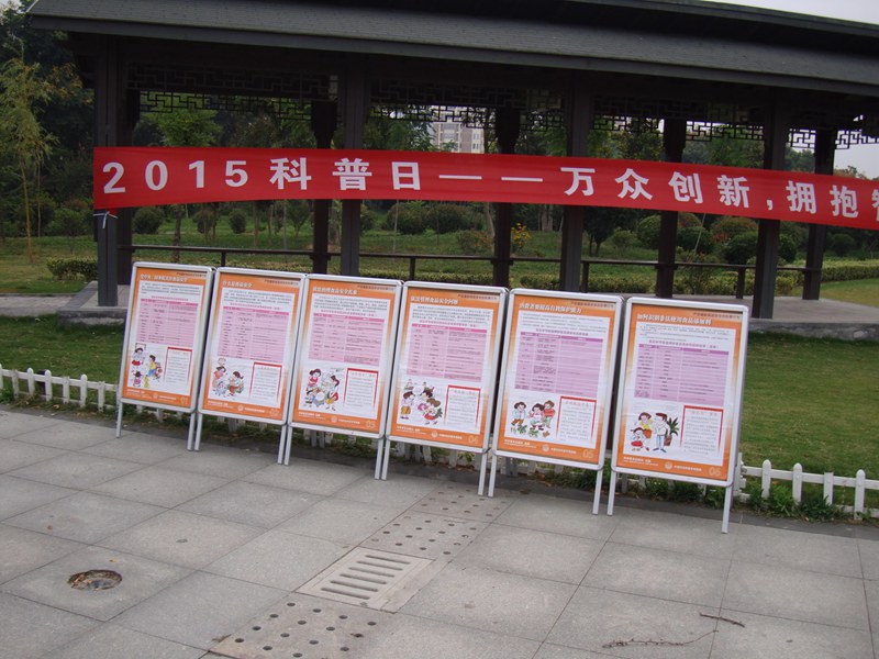 科協(xié)在棲鳳園廣場擺放的科普展板