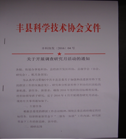 豐縣科協(xié)印發(fā)的開展調(diào)查研究月活動的通知