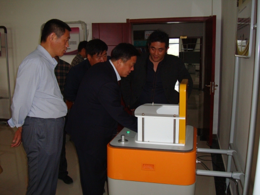 豐縣科協(xié)張主席在工作人員的指導(dǎo)下體驗(yàn)科普展具