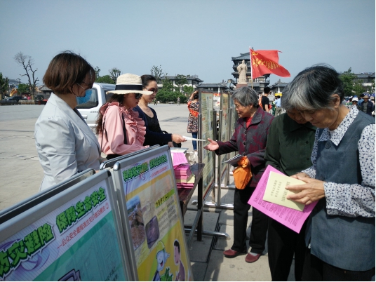 科協(xié)工作人員在廣場向市民發(fā)放防災(zāi)減災(zāi)宣傳資料