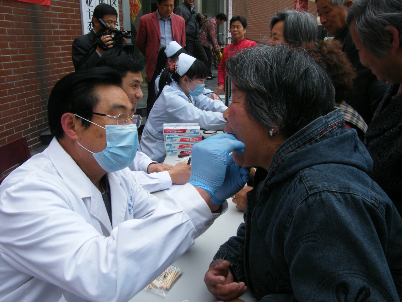 牙醫(yī)在為市民查看牙科疾病