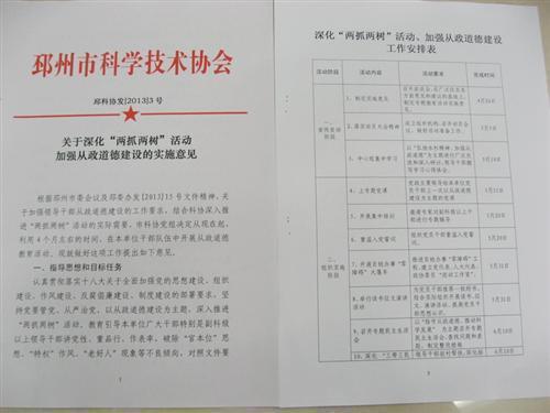 邳州市科協(xié)制定《關(guān)于深化“兩抓兩樹”活動(dòng)加強(qiáng)從政道德建設(shè)的實(shí)施意見》