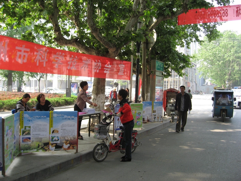 邳州市科協(xié)科普志愿者向市民發(fā)宣傳手冊
