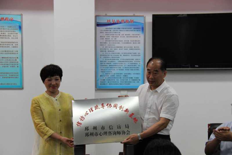 為在信訪工作中加強對信訪者的人文關懷,科學應用心理疏導方法,緩解信訪人心理壓力,排除心理障礙,順暢表達心理訴求,消除信訪人內心不和諧因素,引導信訪人對信訪問題進行客觀分析,依法依規(guī)處理信訪問題,促進社會和諧穩(wěn)定。邳州市心理咨詢師協(xié)會與邳州市信訪局聯(lián)合建立了“信訪心理疏導協(xié)同創(chuàng)新基地”,設立了“信訪心理疏導室”。具有國家二級心理咨詢師資格且有豐富工作經(jīng)驗的4名協(xié)會會員作為信訪心理疏導員。