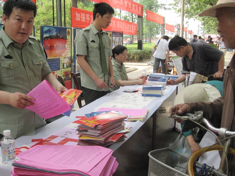 市民參加萬人簽名活動 工作人員發(fā)放宣傳材料