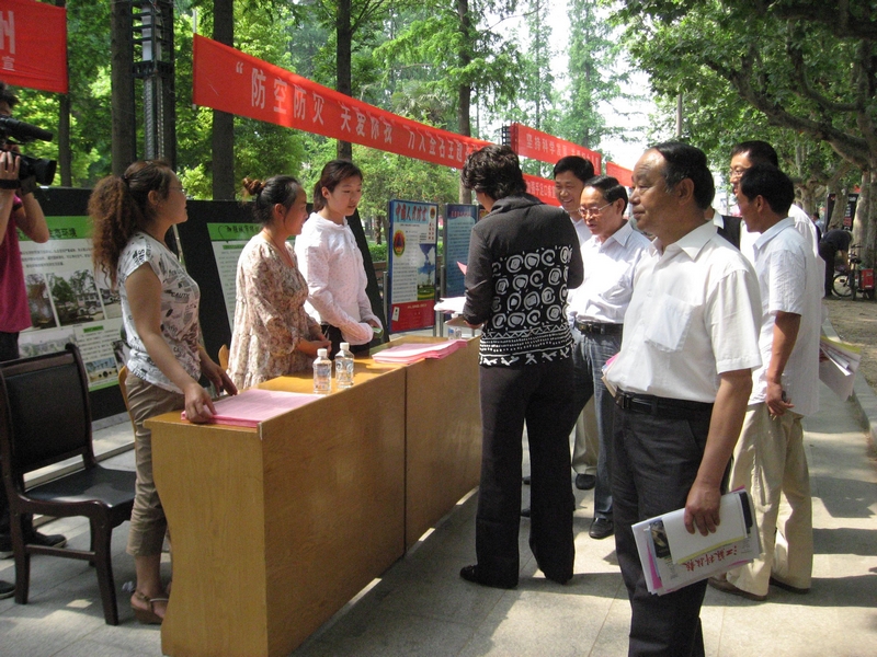 活動現(xiàn)場,開展了“防空防災(zāi) 關(guān)愛你我”萬人簽名主題系列活動。擺放了40多塊展板,用圖例、漫畫、照片等形式對人民防空標(biāo)志、基本措施,防空警報信號分類進(jìn)行了生動、形象的標(biāo)注與說明;工作人員向市民宣傳防空防災(zāi)知識,并發(fā)放《防空防災(zāi)知識》、《市民防空防災(zāi)手冊》等宣傳資料,為群眾講解防空防災(zāi)的重要意義及有關(guān)知識。幫助大家樹立基本的防空意識,提高認(rèn)知、辨別防空警報信號的能力,同時也讓居民對人防的地位和作用有了進(jìn)一步的認(rèn)識。