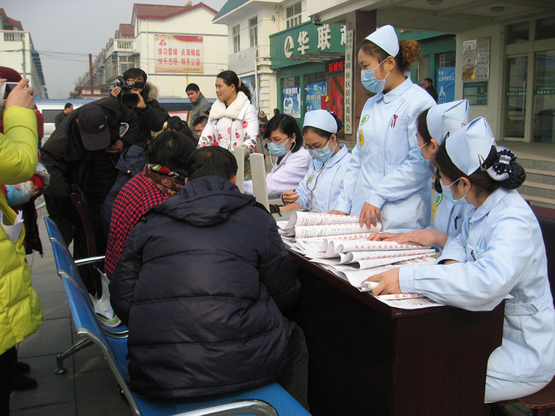 科普志愿者為光明社區(qū)居民義務(wù)測量血壓并宣傳醫(yī)療保健知識(shí)