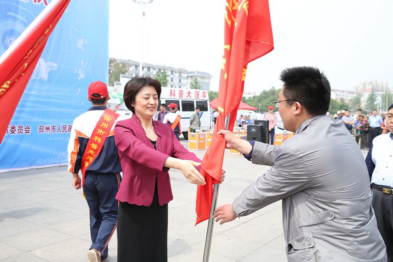 陳靜表示,邳州市將以本次活動(dòng)為契機(jī),把科普宣傳與踐行群眾路線相結(jié)合,大力開展一系列貼近實(shí)際、貼近生活、貼近群眾、貼近企業(yè)、關(guān)注民生的科普活動(dòng)盛會(huì),在全社會(huì)形成講科學(xué)、愛科學(xué)、學(xué)科學(xué)、用科學(xué)的濃厚氛圍,為建設(shè)智慧徐州做出新的更大的貢獻(xiàn)。徐州市科協(xié)主席、科普志愿者服務(wù)總隊(duì)隊(duì)長(zhǎng)朱玲為科普志愿者服務(wù)大隊(duì)授旗
