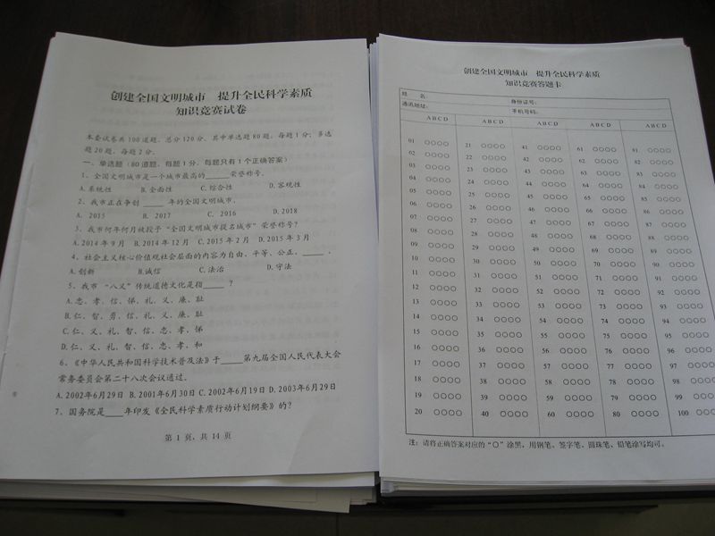 《創(chuàng)建全國(guó)文明城市 提升全民科學(xué)素質(zhì)知識(shí)競(jìng)賽》試卷