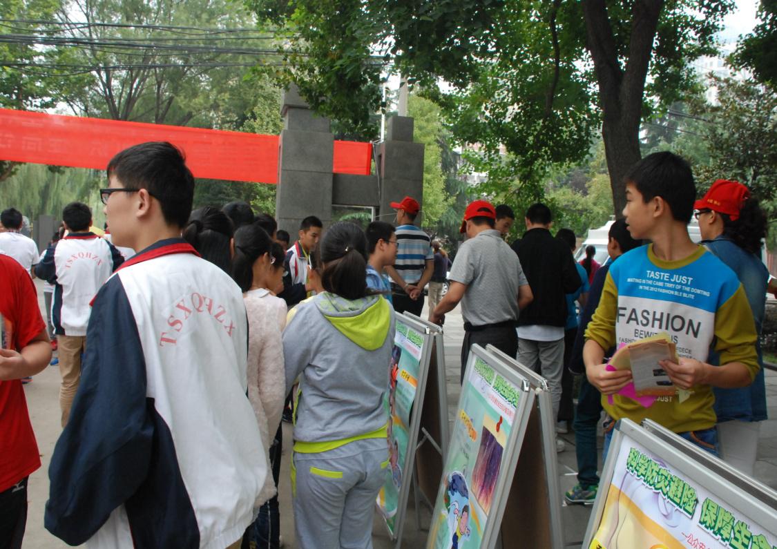 向中學生發(fā)放科普資料